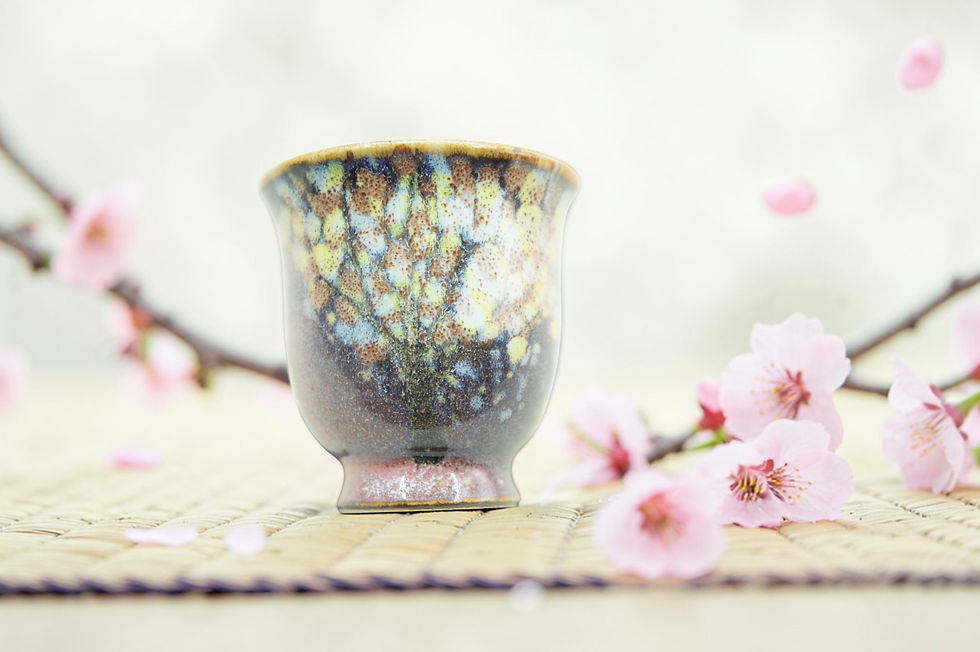 Nunohiki - Sakura Pottery Round mouth small Cup - Blue color